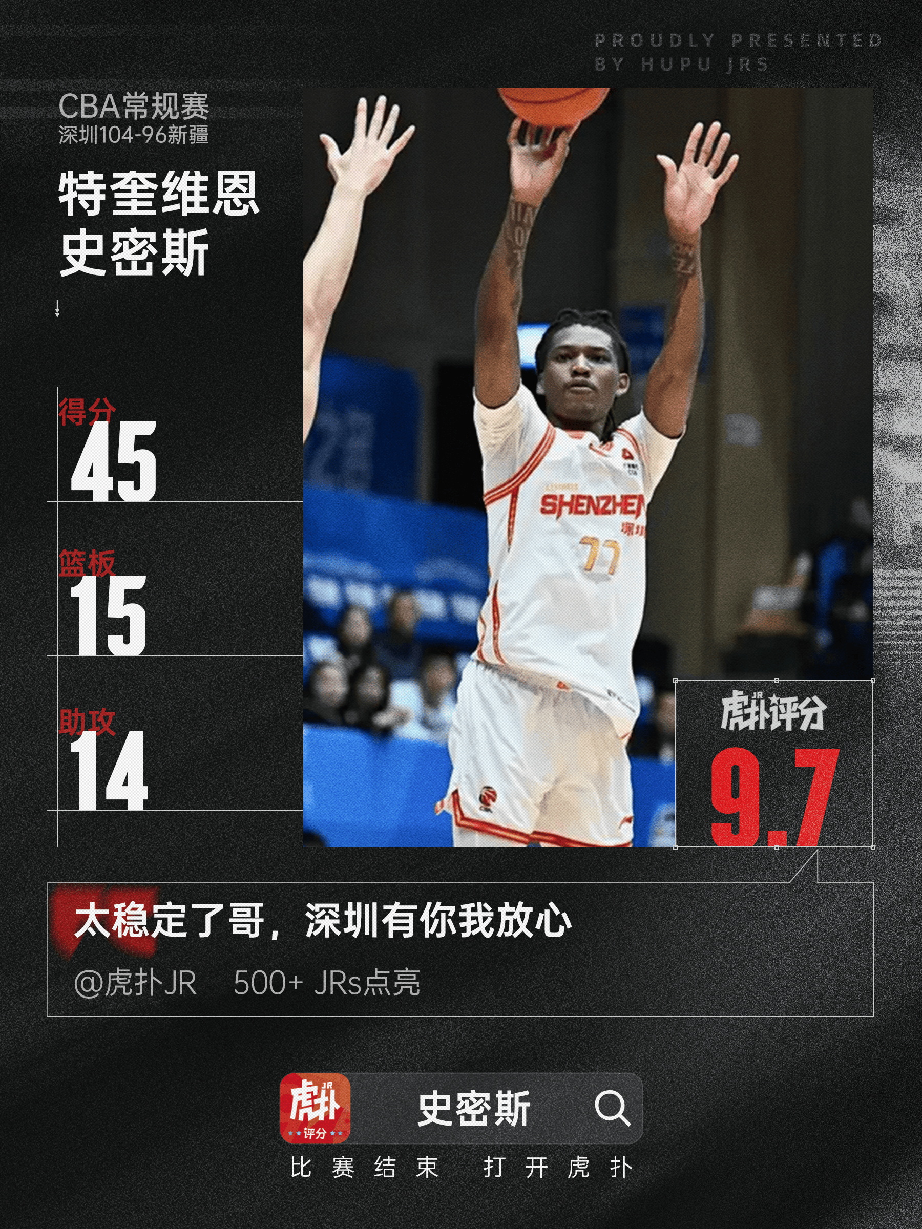 [流言板]超级三双!史密斯出战38分钟,得到45分15篮板14助攻